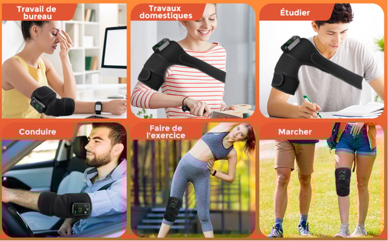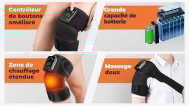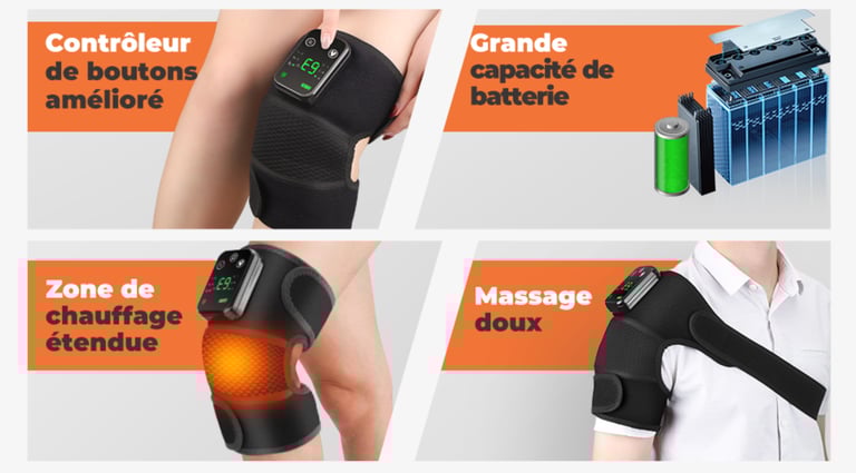 Soulagez vos douleurs au genou, au coude et à l’épaule avec un masseur 3 en 1 qui combine chaleur apaisante, vibrations relaxantes et soutien ergonomique pour un confort durable.